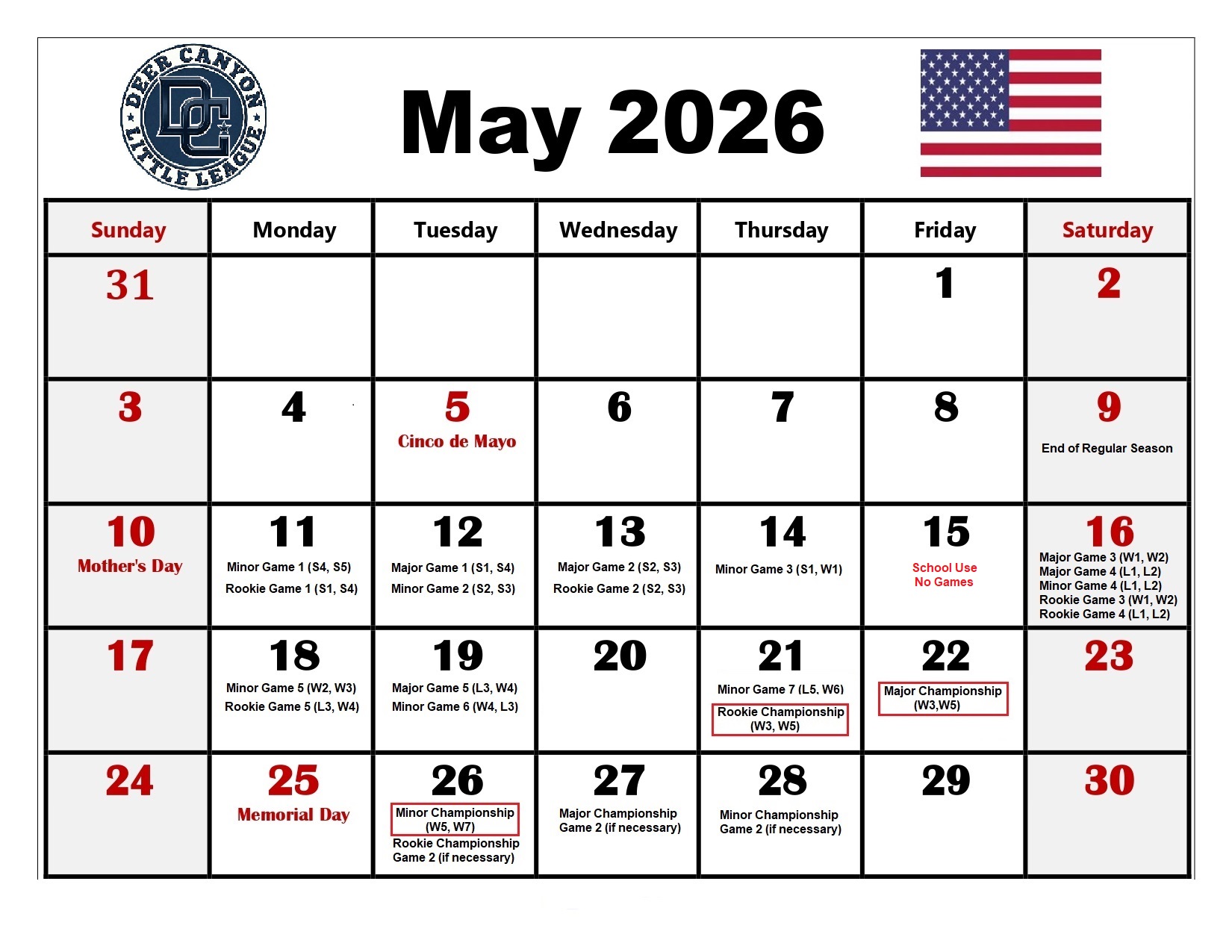 2026 DCLL Tournament Calendar.